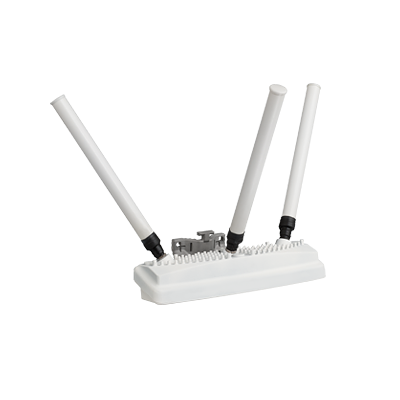 La estación base 802.11n, cuenta con sus tres antenas omnidireccionales inclinadas 30° para proporcionar cobertura a usuarios por debajo de la estación, lo cual la hace ideal para bañar áreas verdes y zonas de alberca de un hotel, proporcionar conectividad dentro de bodegas, almacenes, cines, centros comerciales, teatros, centros de convenciones, maquilas, aeropuertos, etc. en zonas abiertas en donde se requiera altas velocidades para grandes cantidades de usuarios.