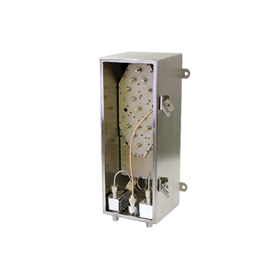 - Preselector de 7 polos, con pérdida por inserción < 0.8 dB, 50 Ω, 12 Vcd @ 1.25 A, - 30 a 60 °C.