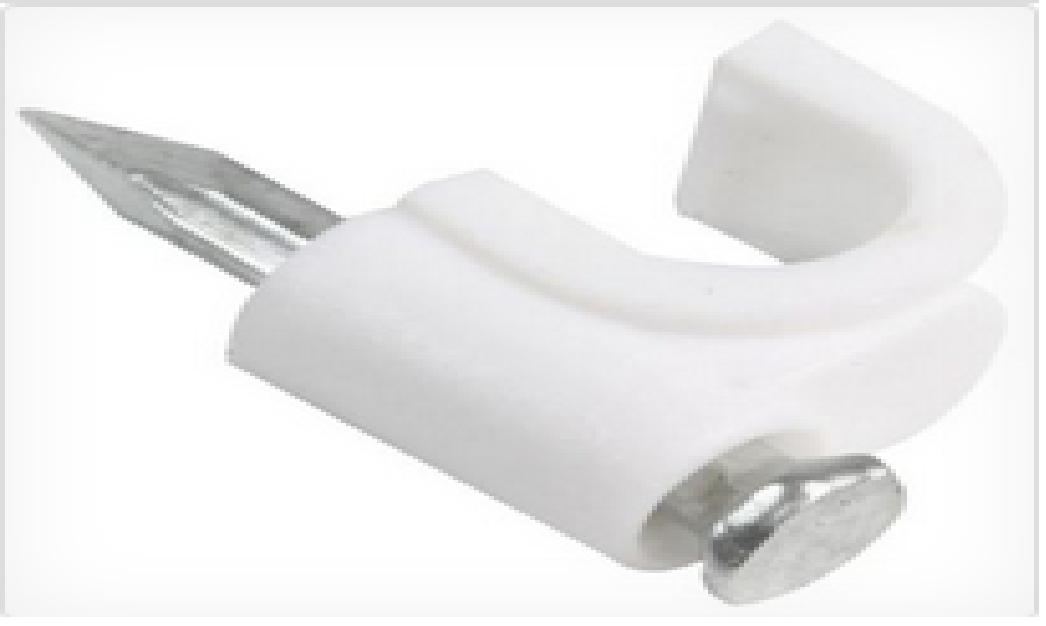 Bolsa de 20 grapas color blanco, ideal para diferentes tipos de cable, redondo, es de 22 mm de ancho, con clavo.
