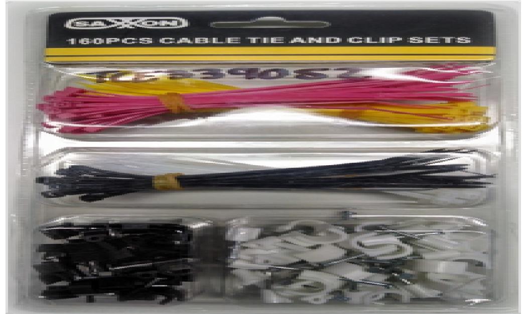 Paquete de 160 piezas en el cual incluye: cincho de colores negro, amarillo y rosa y grapas de color negro y blanco.