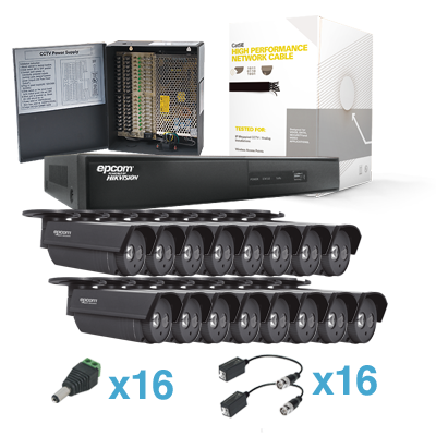 Sistema HDX Con 16 HRB800EXIR(800+TVL, EXIR 40M, Exterior), EV1016HDX, 305m Cable Cat5e LinkedPRO, Fuente de Poder Profesional, Transceptores TITANIUM.