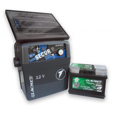 Incluye: Electrificador Secur 300, Panel solar 10 W, Batería 12 V / 62 Ah