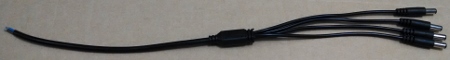 Cable tipo pulpo para suministro y distribución de corriente eléctrica para 4 cámaras  de CCTV , desde una sola fuente de energía. Tiene 4 conectores machos de 2.1mm para  las cámaras y 2 hilos para conectarlo a la fuente de energía.