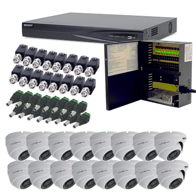 TURBOE816 Sistema TurboHD(TVI)1080p, 16 Domos Antivandalicos 90° IR Exterior/Interior TurboHD, Balluns TurboHD, Fuente de Poder Profesional, AGREGAR CABLE